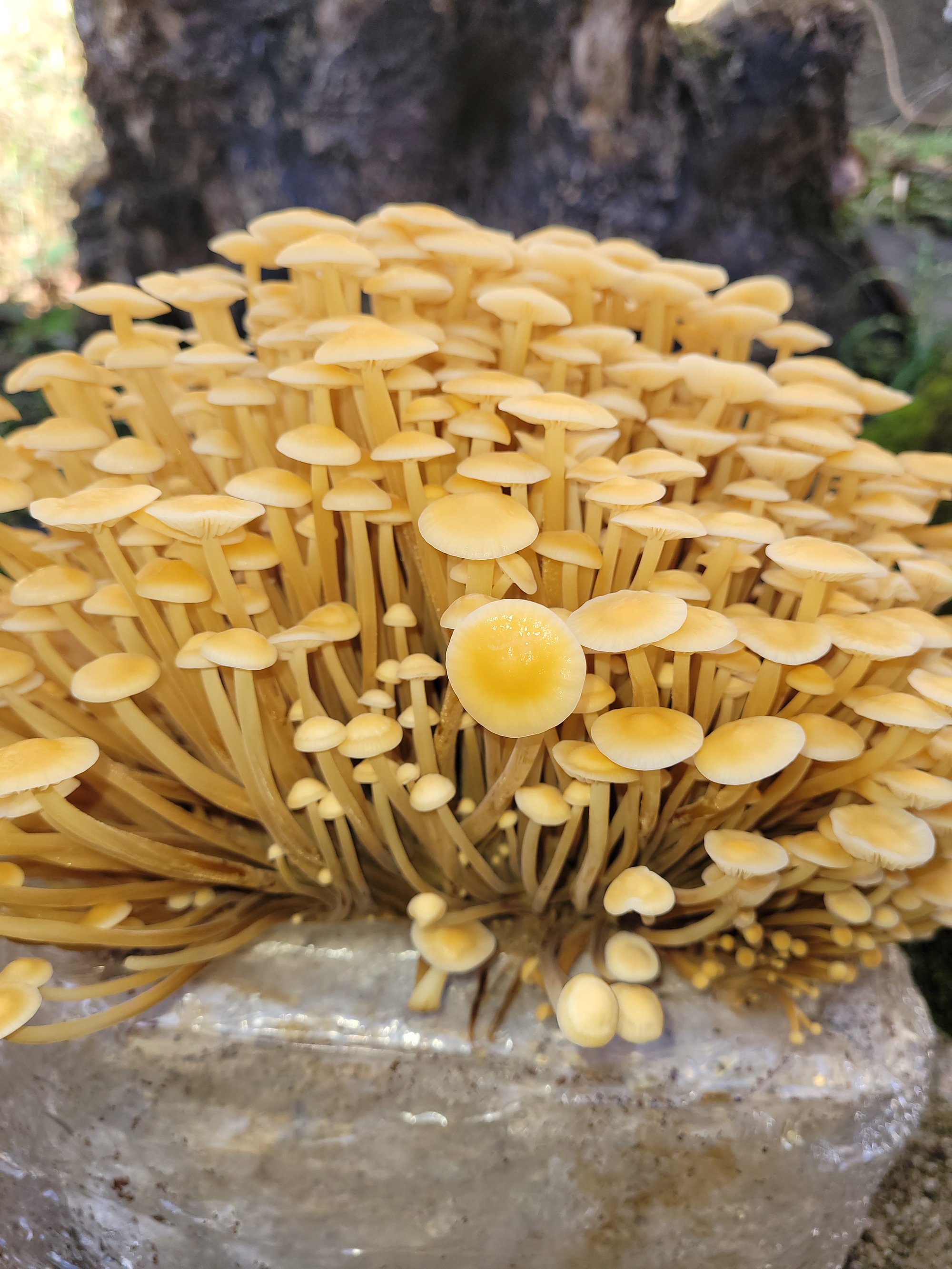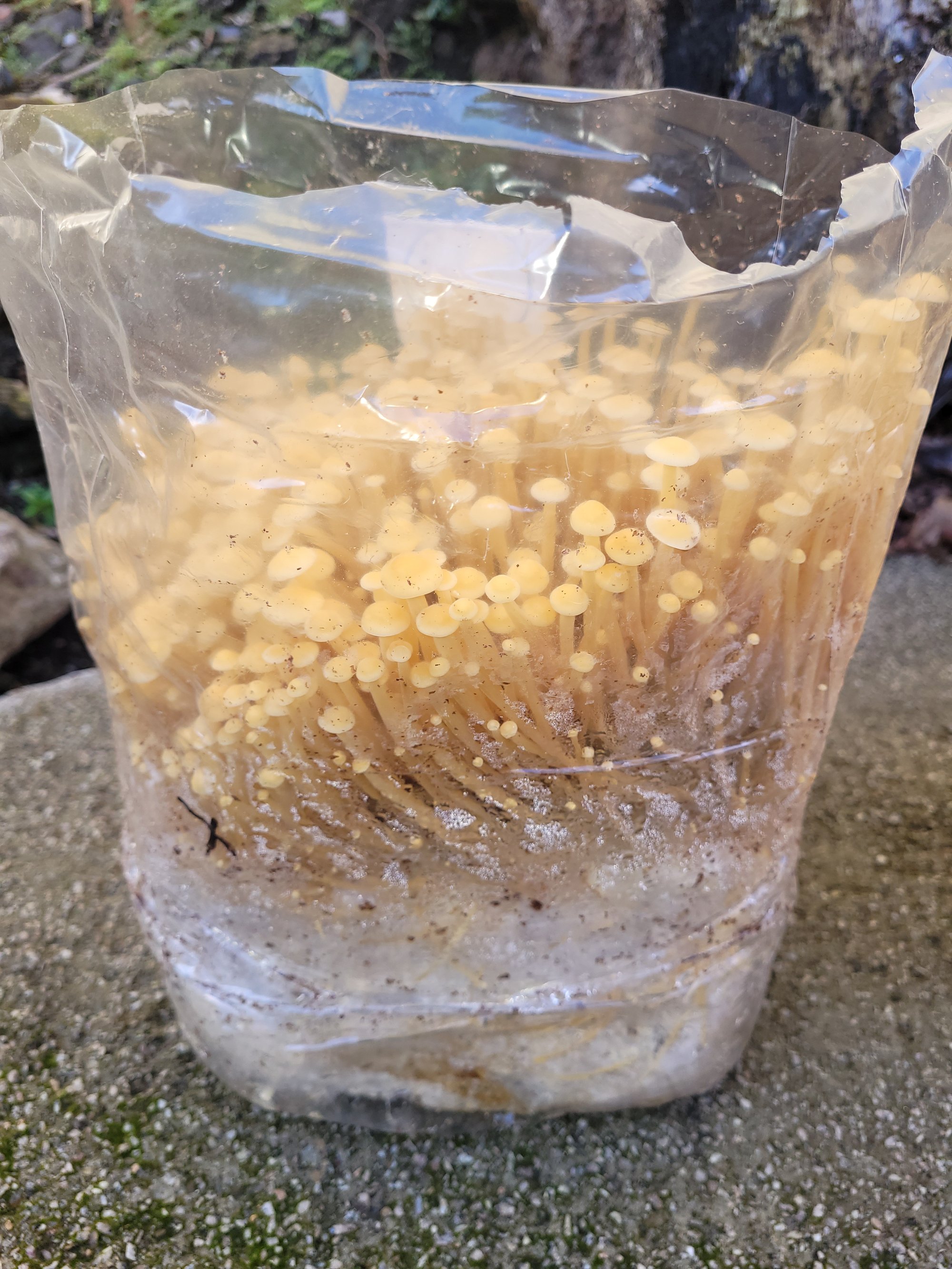 Golden Enoki grow at home kit fruiting block